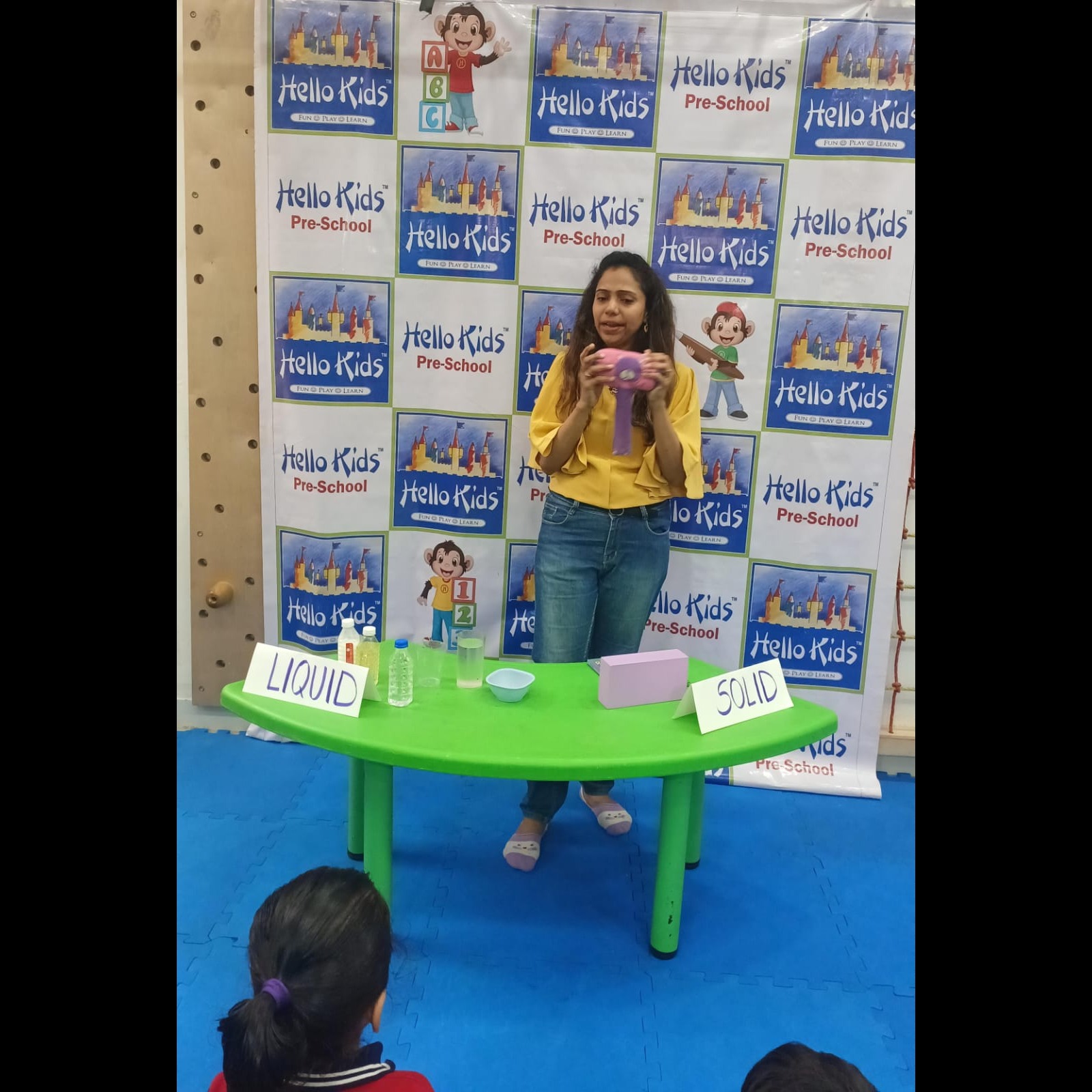 At Hello Kids Flamingo Preschool, children are introduced to basic science concepts through simple, hands-on learning experiences. One such engaging activity is the Introduction to Solids and Liquids, designed to help young learners understand the difference between various materials in their everyday surroundings.