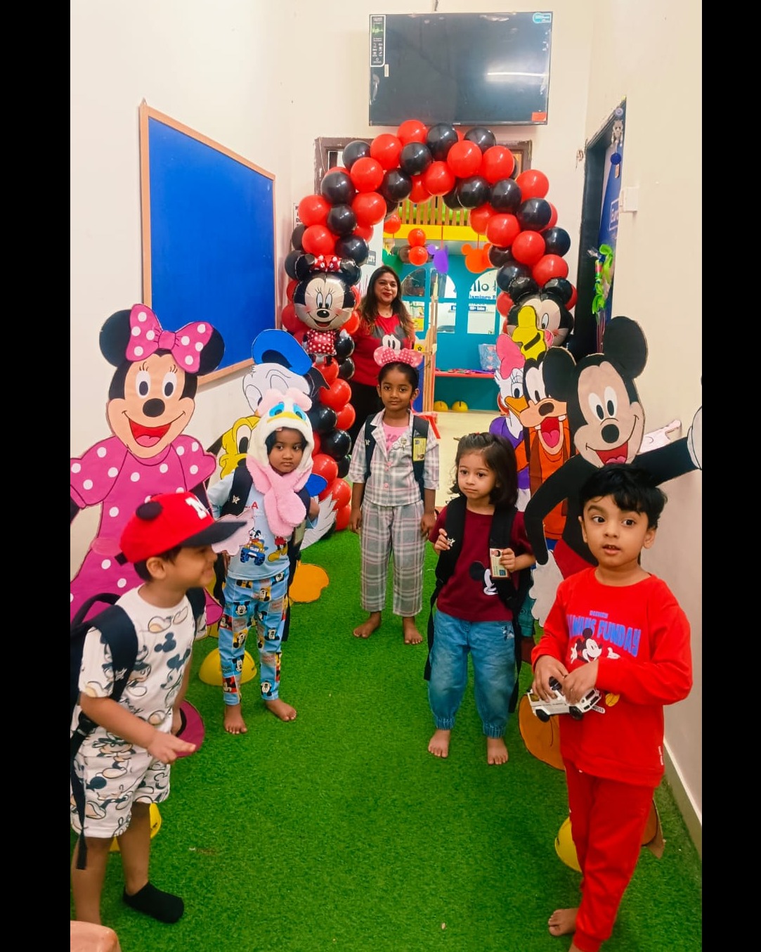 Each activity at the play school is carefully planned to support cognitive and emotional development. Teachers engage children in singing, dancing, story sessions, and creative art that build fine motor skills and early communication abilities. The environment is cheerful and safe, allowing every child to learn at their own pace while making friends and discovering new interests.