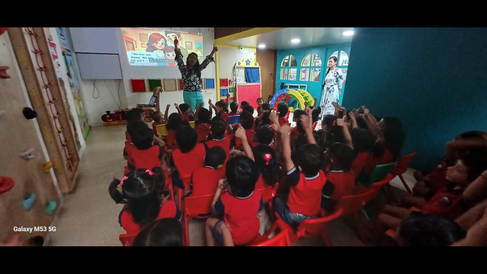 Using digital screens, audio-visual content, and interactive storytelling, teachers introduce important values such as kindness, honesty, sharing, respect, and responsibility. These smart classes help children understand real-life situations through animated stories, visuals, and discussions that are easy for young learners to relate to.