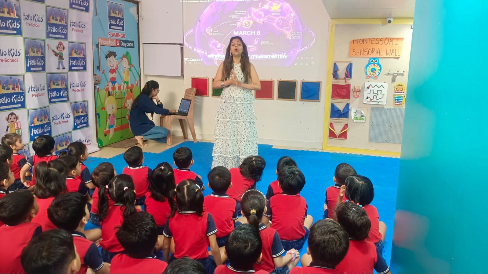 The celebration of International Women's Day at Hello Kids Flamingo Preschool was a meaningful occasion dedicated to recognizing the strength, dedication, and contributions of women in our families and society.